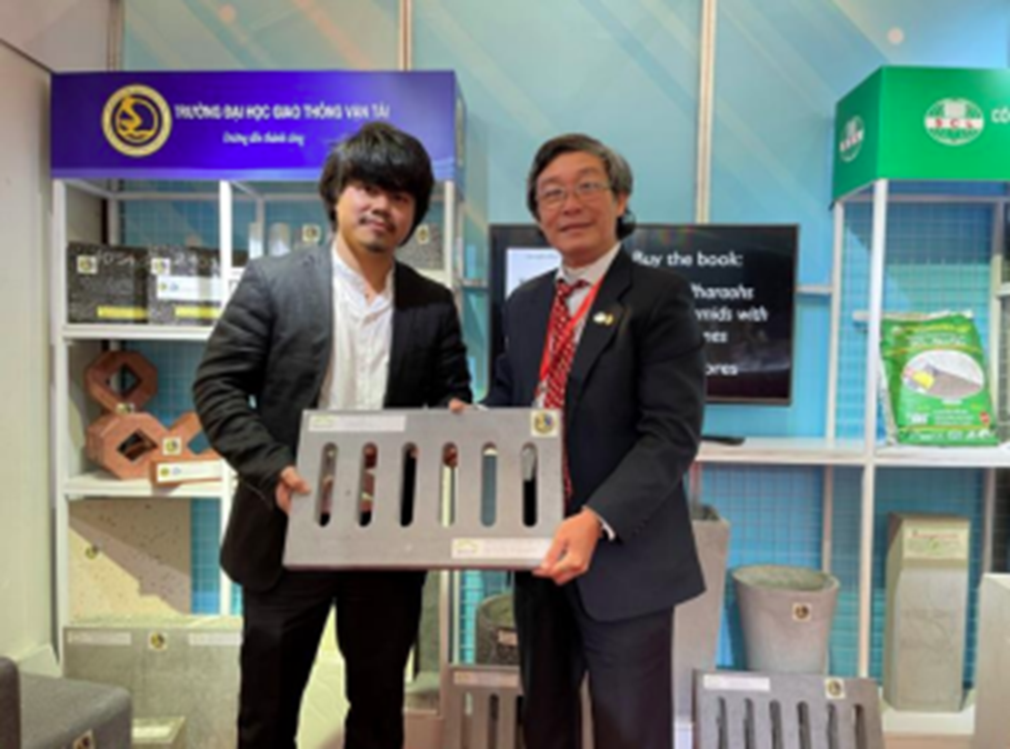 PGS.TS. Lê Thanh Hà và ông Huỳnh Hòa – Chủ tịch Hội Cầu đường tỉnh Khánh Hòa. Sản phầm song chắn rác bê tông cường độ siêu cao, triển lãm tại Đại hội đại biểu toàn quốc Liên hiệp các Hội Khoa học Kỹ thuật Việt Nam (VUSTA) lần thứ VIII, 2020